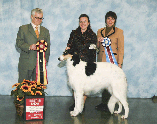 Summer had really gotten serious about being a champion in 2005. At the Rose City Classic Borzoi Club of America Trophy Supported Entry she won back to back majors and was BOS to her brother Shivers over many specials. In the Spring of 2005 she was back to back WB and on the 2nd day she was BOB and Group 4. Summer finished her Championship with a 4 pt major at Whidbey Island.