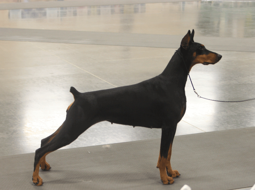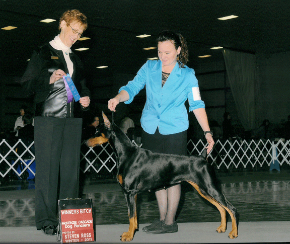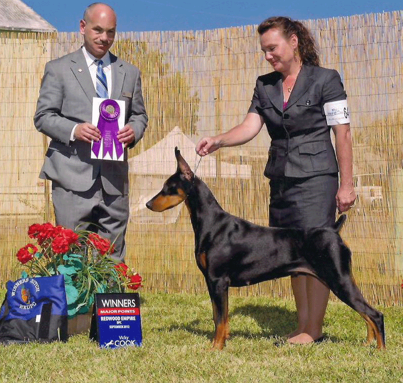 Picture here winning a 4 pt major at the Redwood Empire Doberman Pinscher Specialty under Harry H (Butch) Schulman