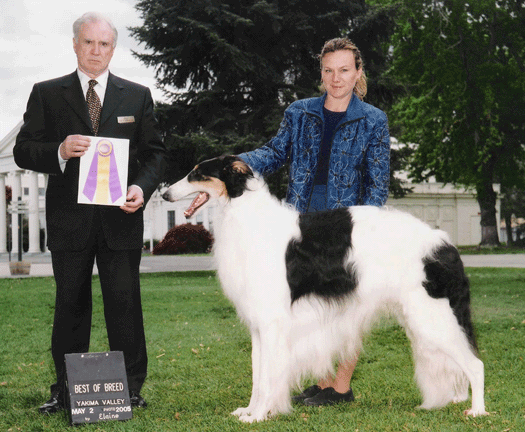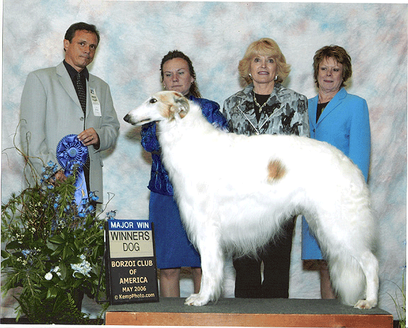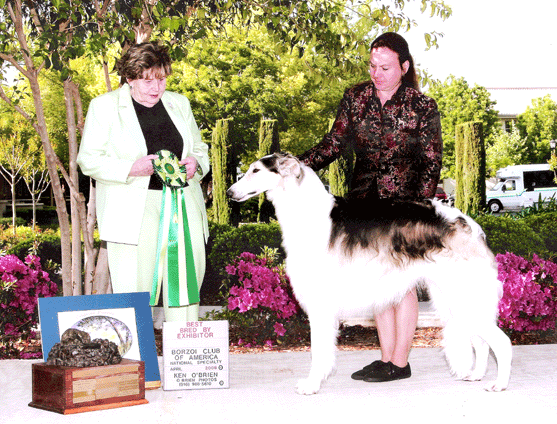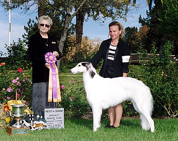 Pictured here winning the Borzoi Club of California Specialty under breeder judge Ms Lorraine Groshans.