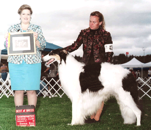 pictured here wining Best of Winners and Best Bred by Exhibitor at the Puget Sound Borzoi Specialty 2010